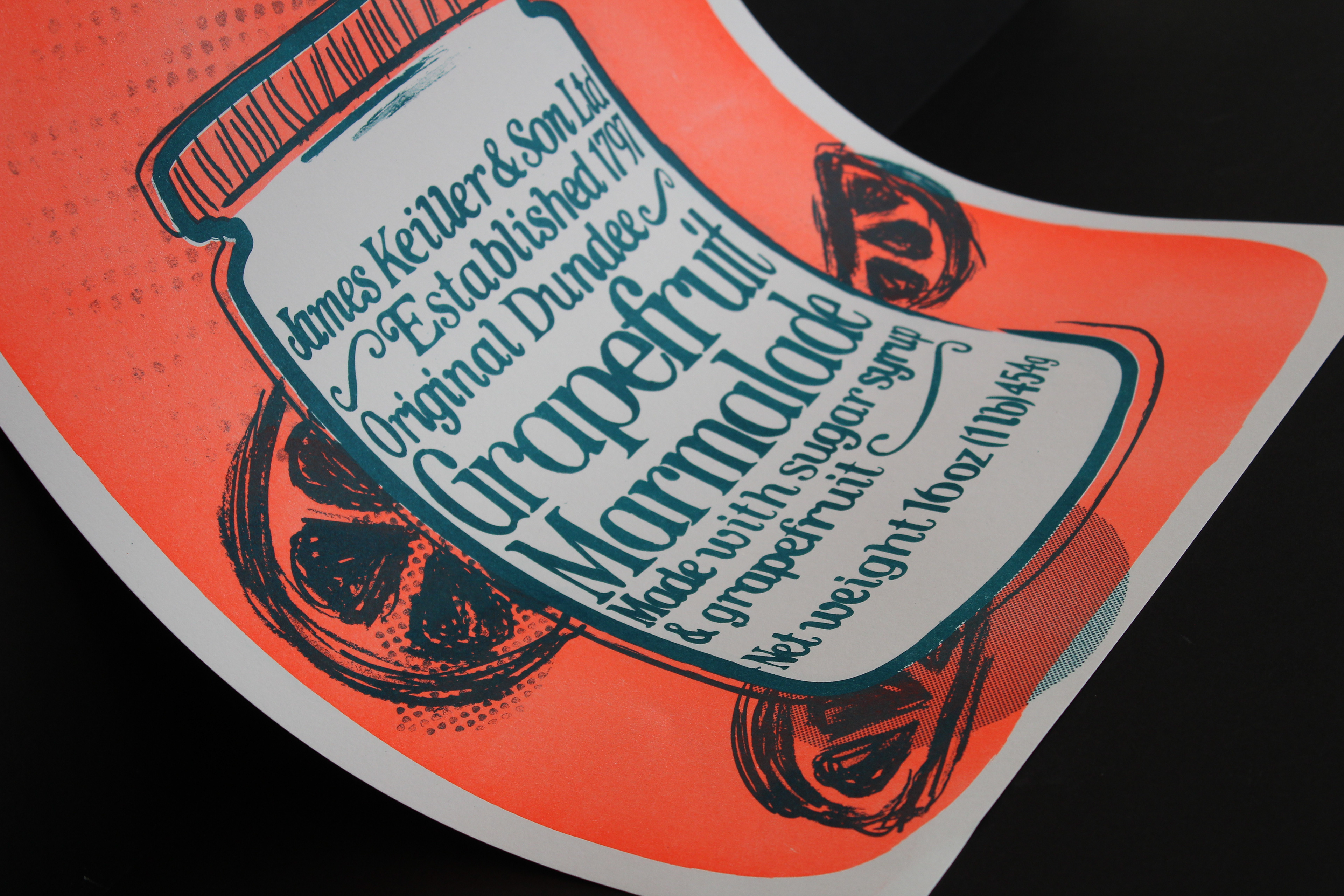 A two colour, limited edition Risograph print celebrating the iconic Keiller’s Marmalade which was made in Dundee. An ode to one of the famous three J’s (Jute, Jam and Journalism) – this print puts a quirky twist on a much loved Dundonian treasure.