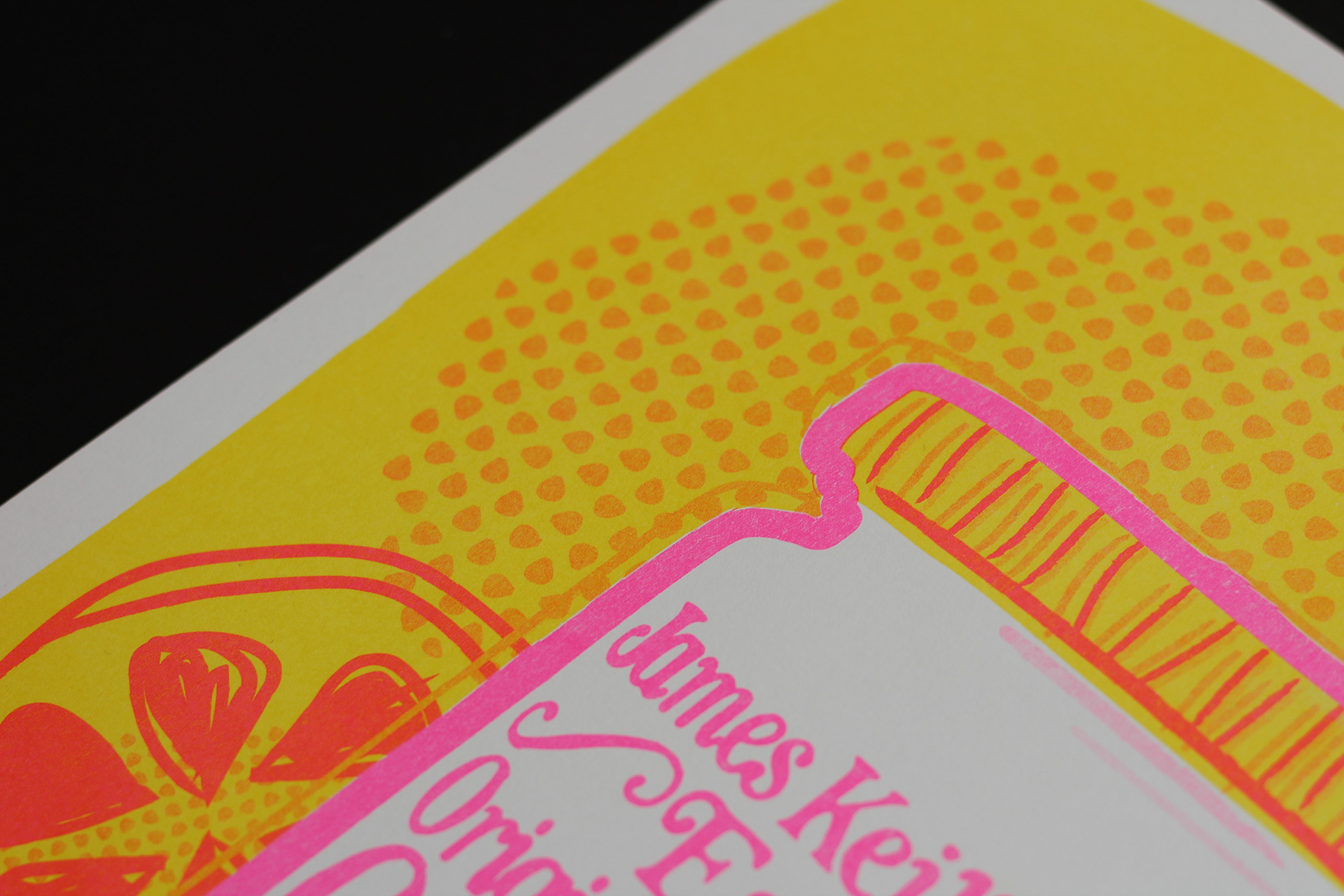 A two colour, limited edition Risograph print celebrating the iconic Keiller’s Marmalade which was made in Dundee. An ode to one of the famous three J’s (Jute, Jam and Journalism) – this print puts a quirky twist on a much loved Dundonian treasure.