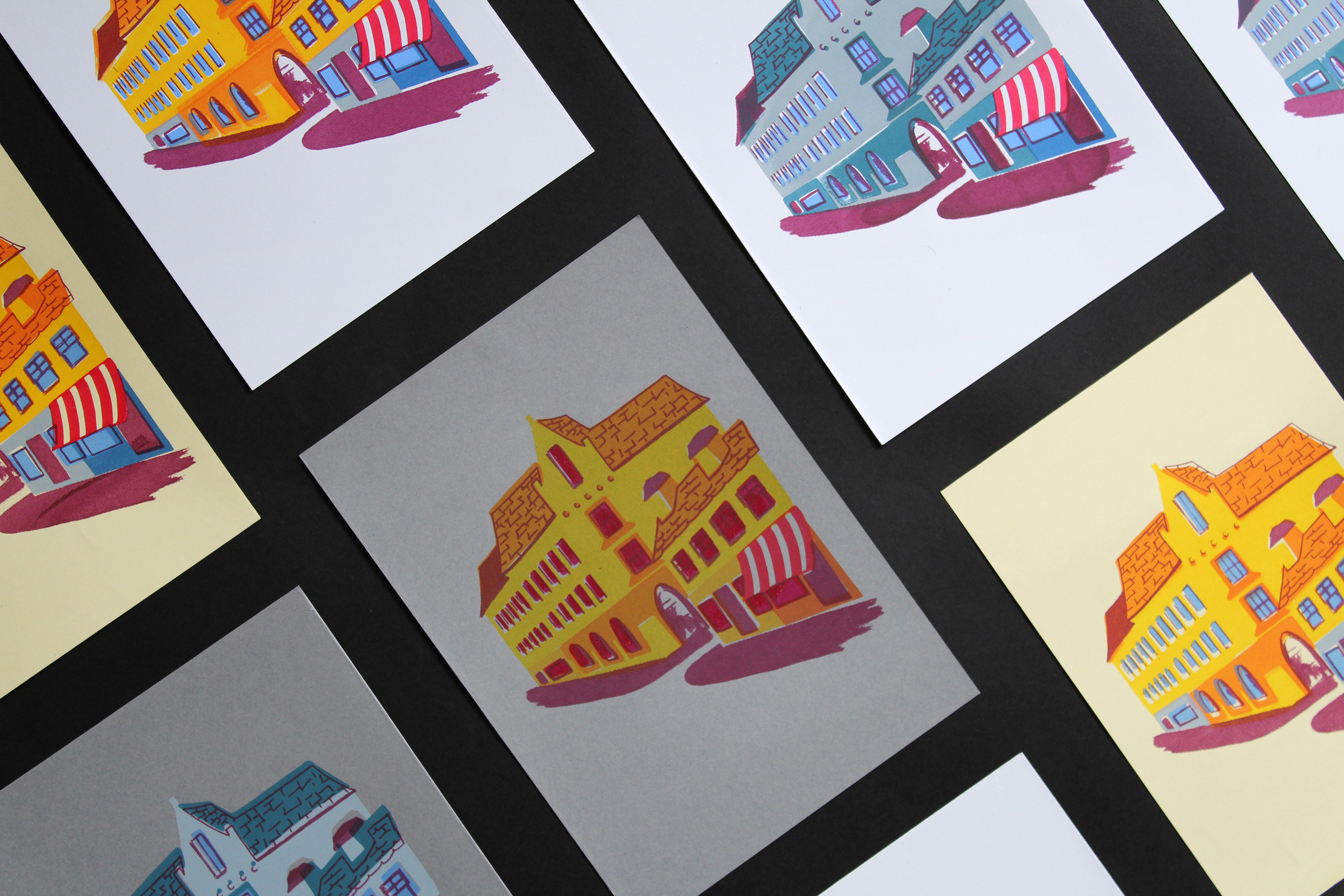 Back in 1938 my great-grandfather opened a butcher shop in Lochee High Street, a business which my grandfather then took over and ran until 2004. There was a great sense of community spirit and pride in those days in the High Street, something which is sadly fading as independent shops are closing their doors. I wanted to emulate the energy of the street in my prints and bring back the charm of a forgotten age.